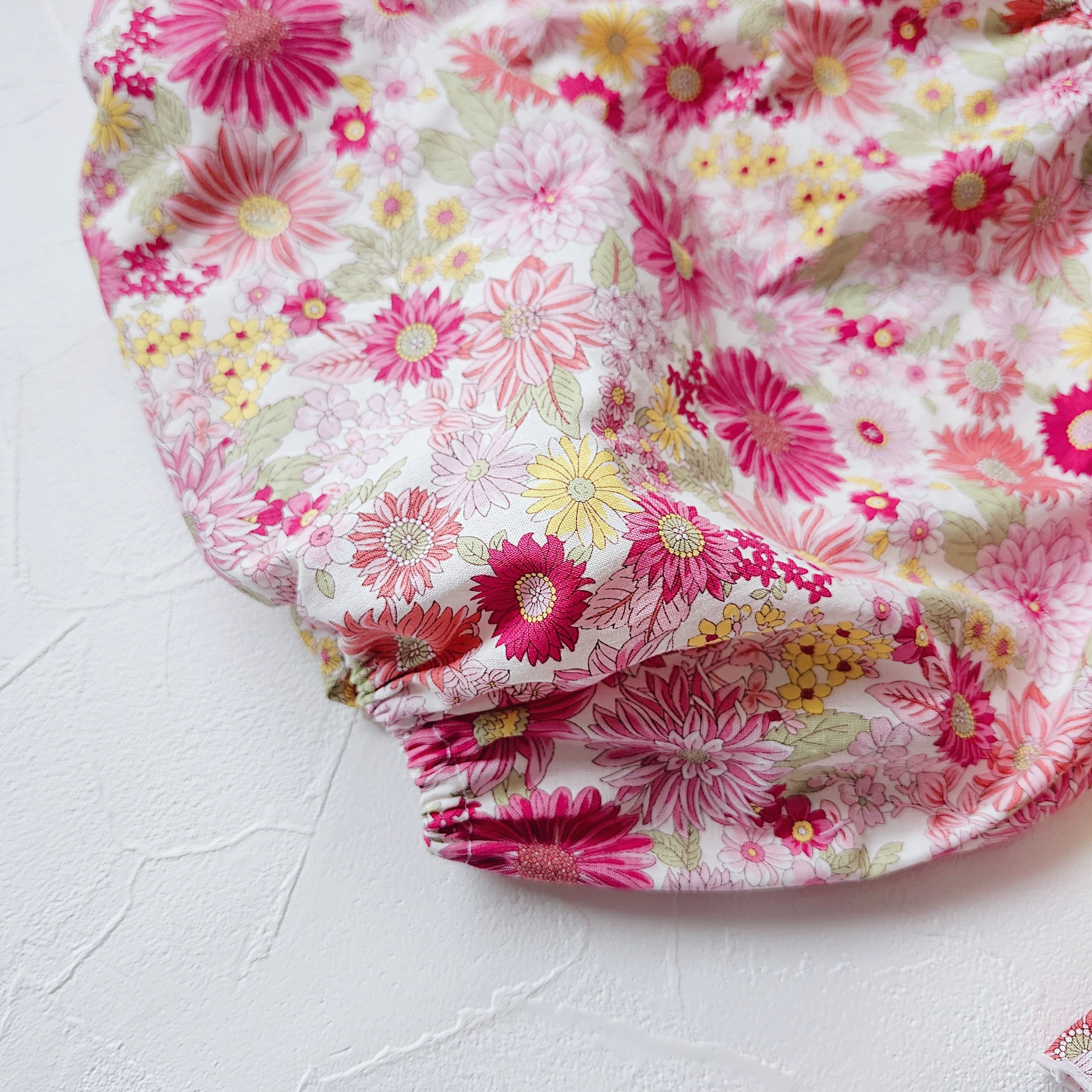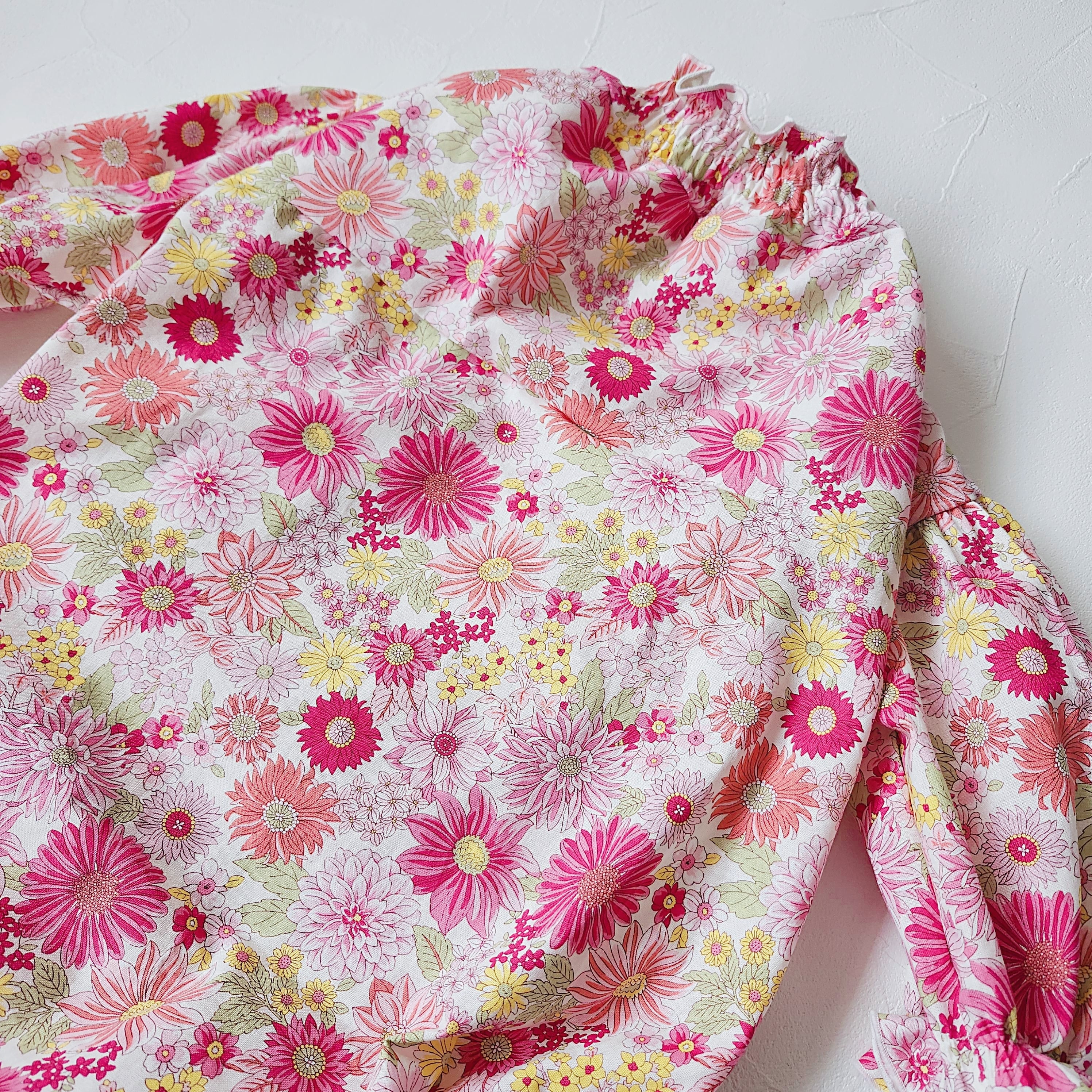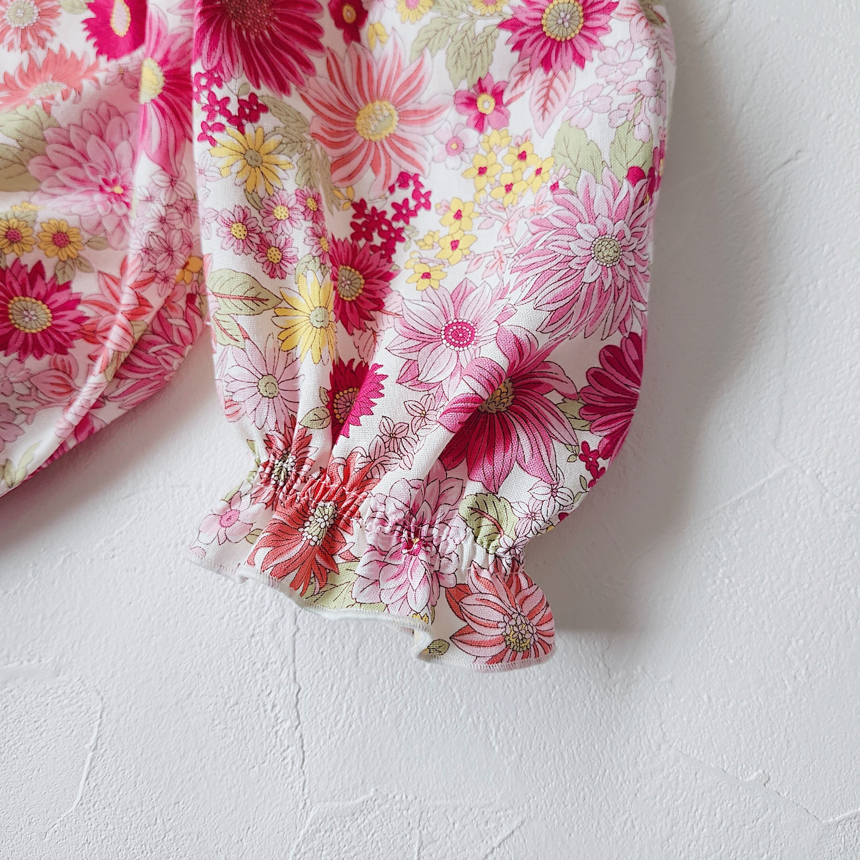 首元と袖口にはシャリーリングゴムを入れているのでお着替えも簡単です。