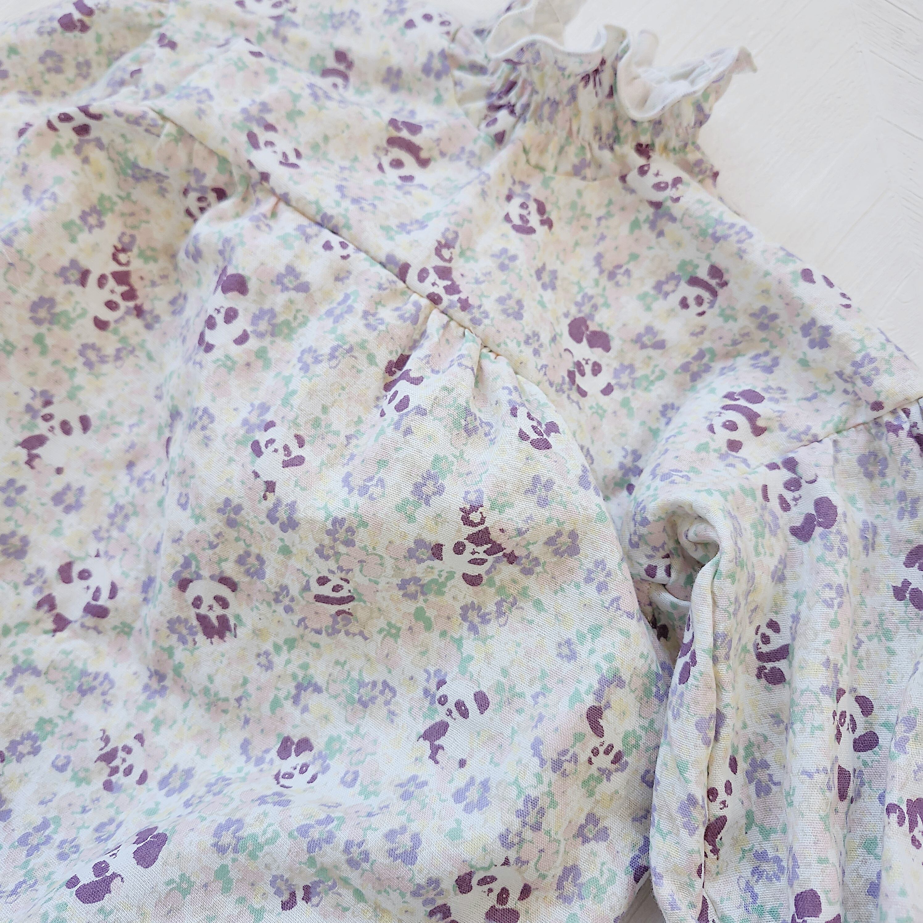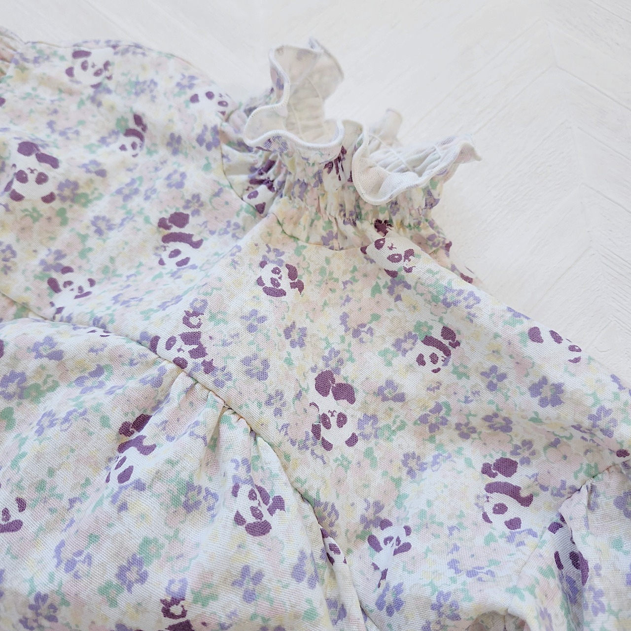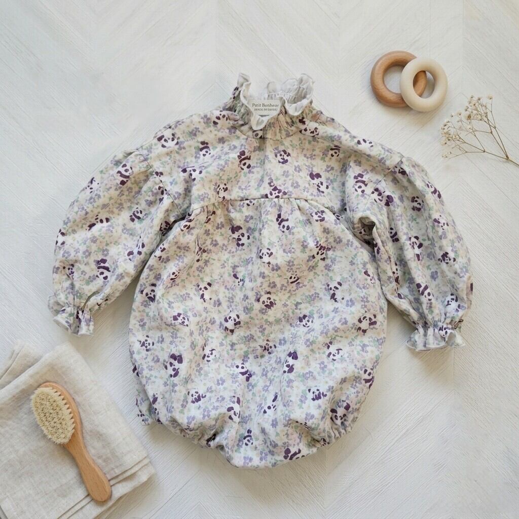 ナチュラルな花柄とひょっこり見えるパンダさんが可愛らしくお出かけにもぴったり。