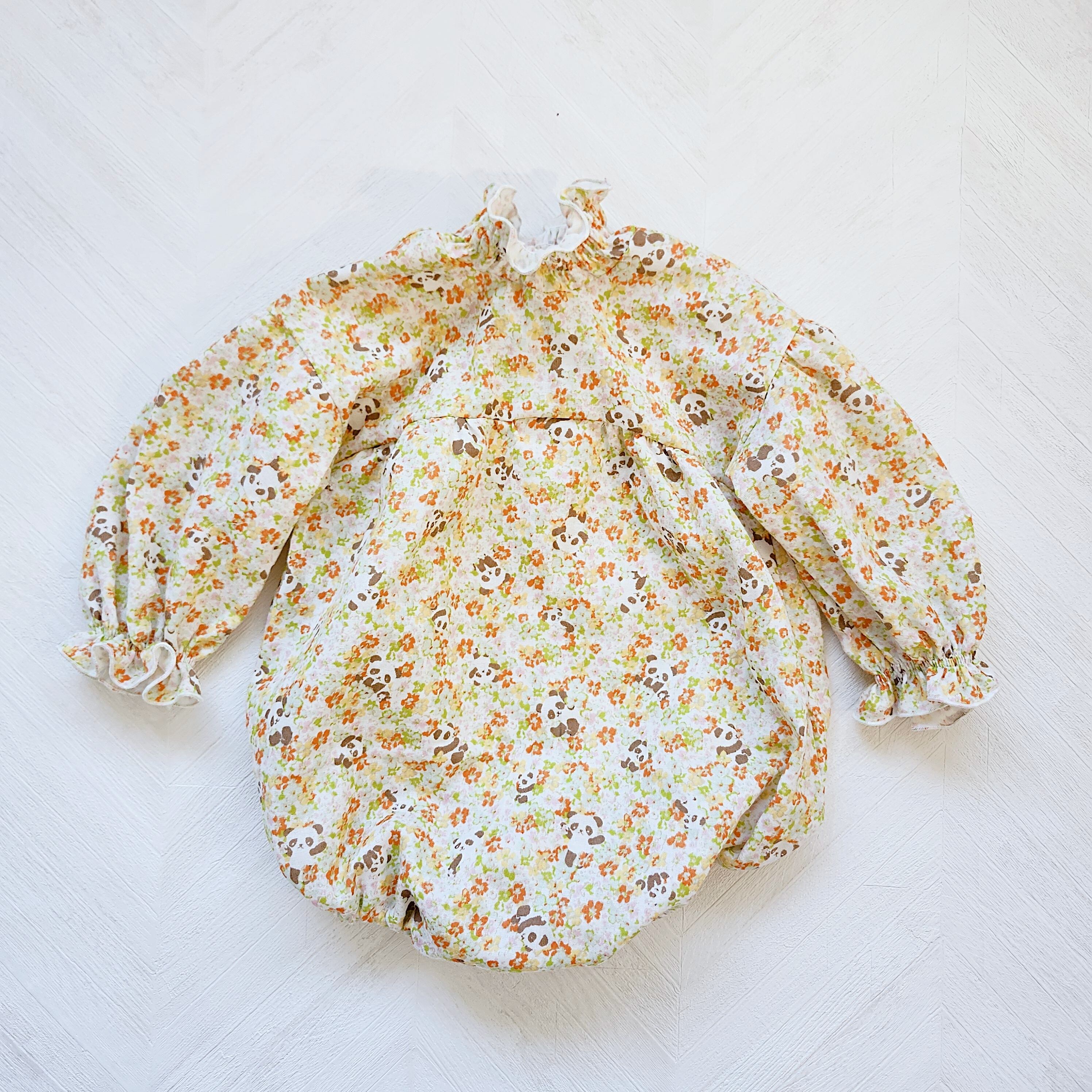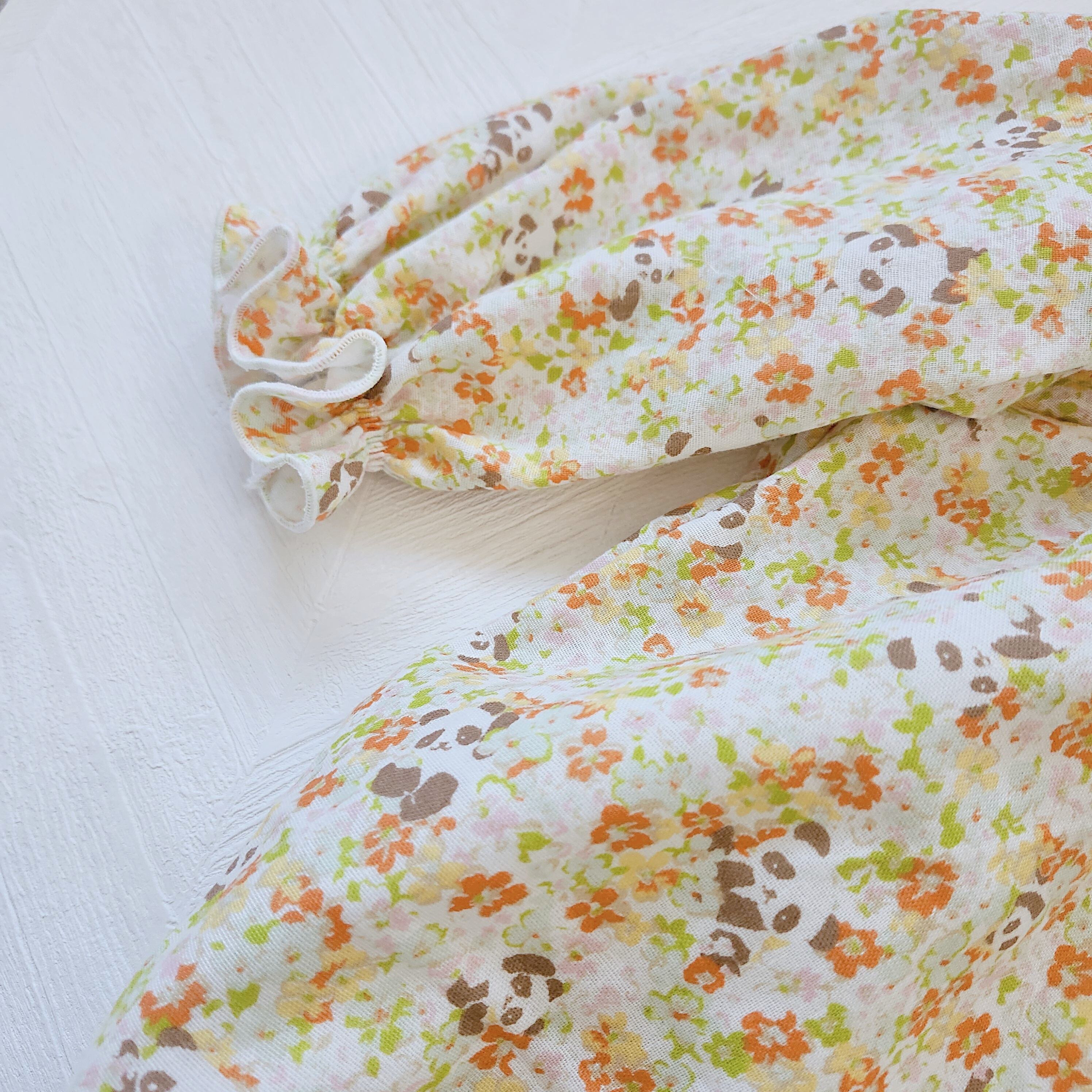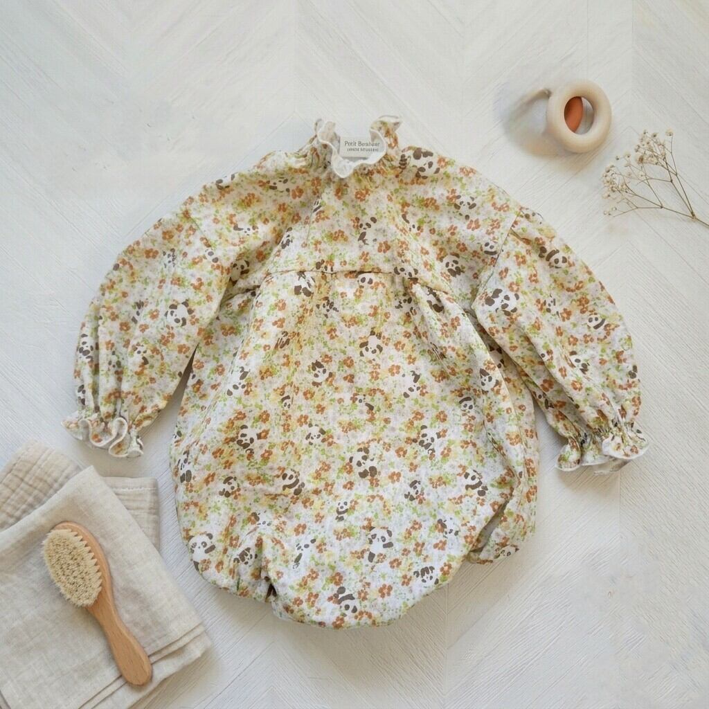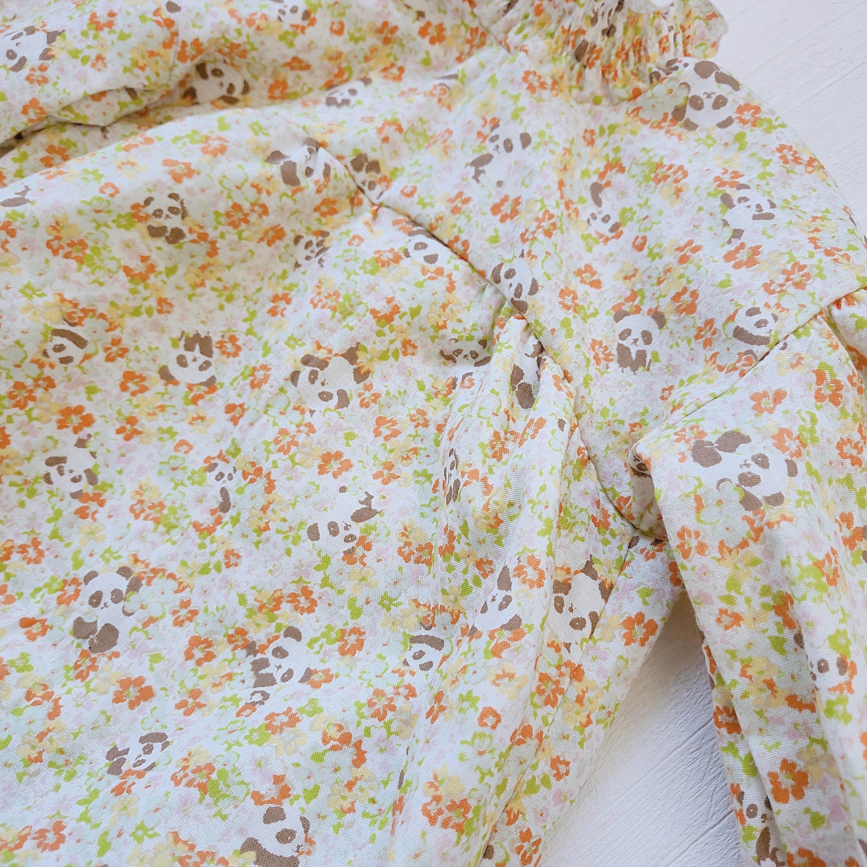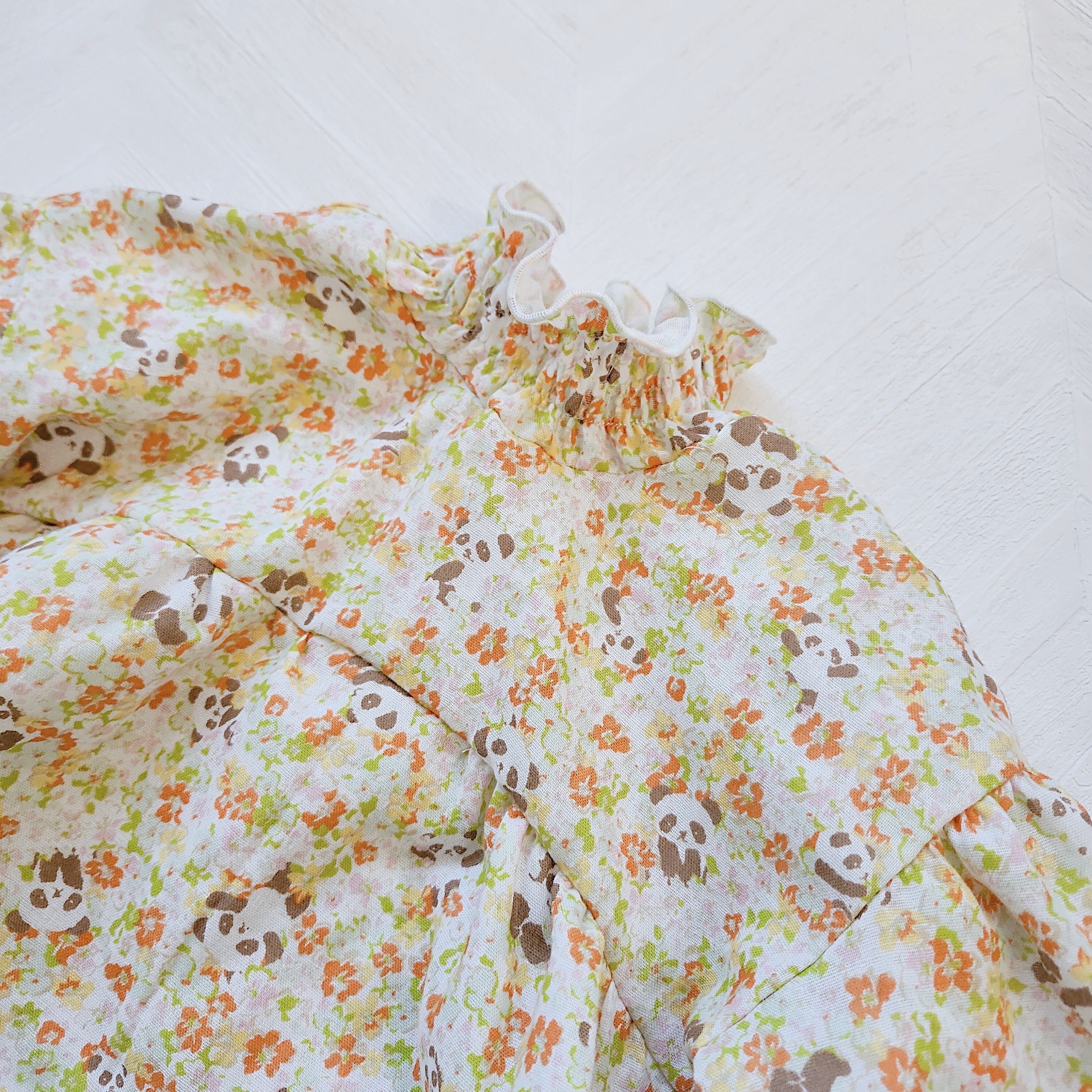 ナチュラルな花柄とひょっこり見えるパンダさんが可愛らしくお出かけにもぴったり。